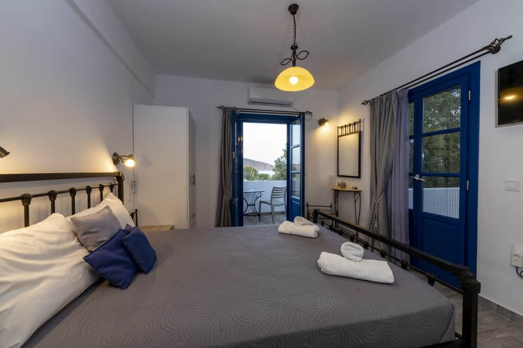 …and invites you to enjoy unique moments. Whether it is a family or a groyp of friends, one thing is certain. That in this room you will create some of the most beautiful memories of your vacation. In an apartment, ode to the Cycladic architecture, bathed by light highlighting its white and blue color you will calm down and enjoy your stay. Equipped with all the amenities that ensure a pleasant stay.